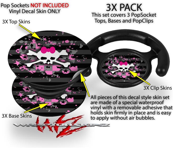 Decal Style Vinyl Skin Wrap 3 Pack for PopSockets Pink Bow Skull (POPSOCKET NOT INCLUDED)