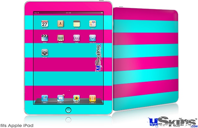 iPad Skin - Psycho Stripes Neon Teal and Hot Pink