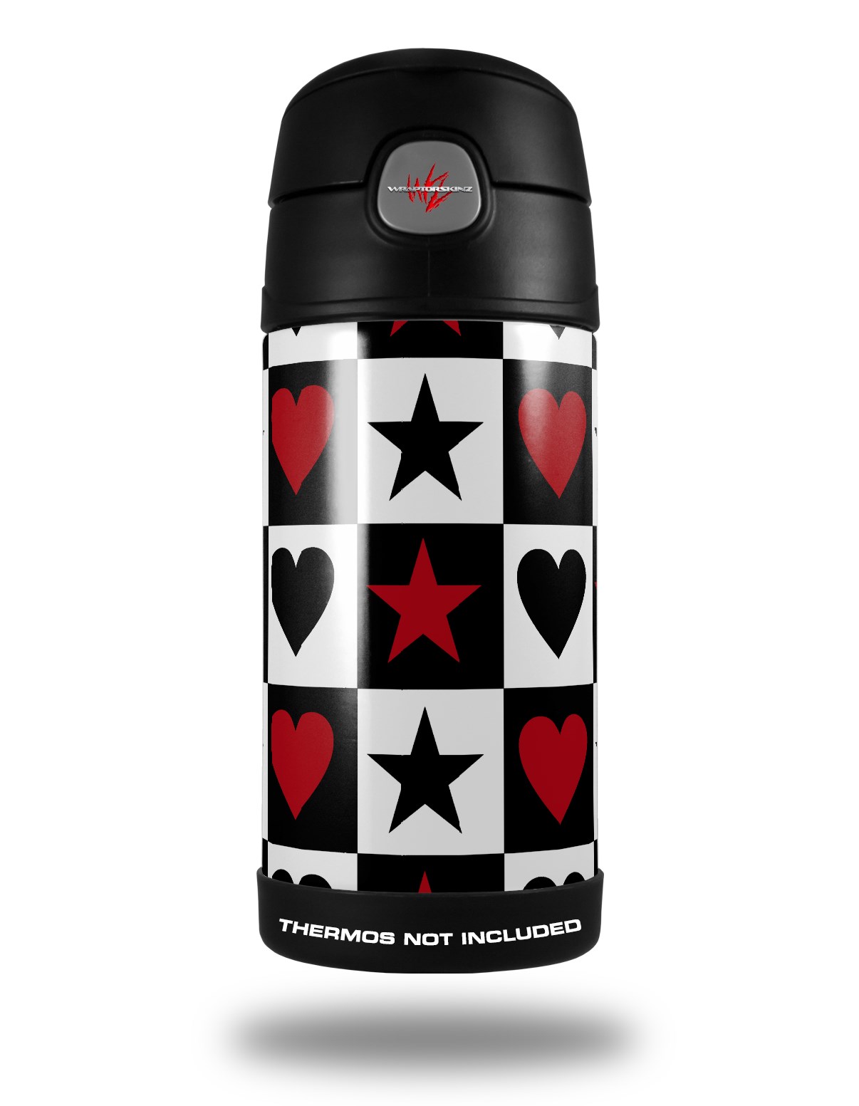 Skin Decal Wrap for Thermos Funtainer 12oz Bottle Hearts and Stars Red (BOTTLE NOT INCLUDED) by WraptorSkinz