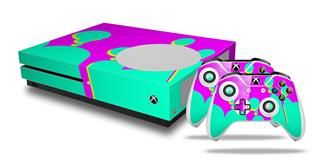 WraptorSkinz Decal Skin Wrap Set works with 2016 and newer XBOX One S Console and 2 Controllers Drip Teal Pink Yellow