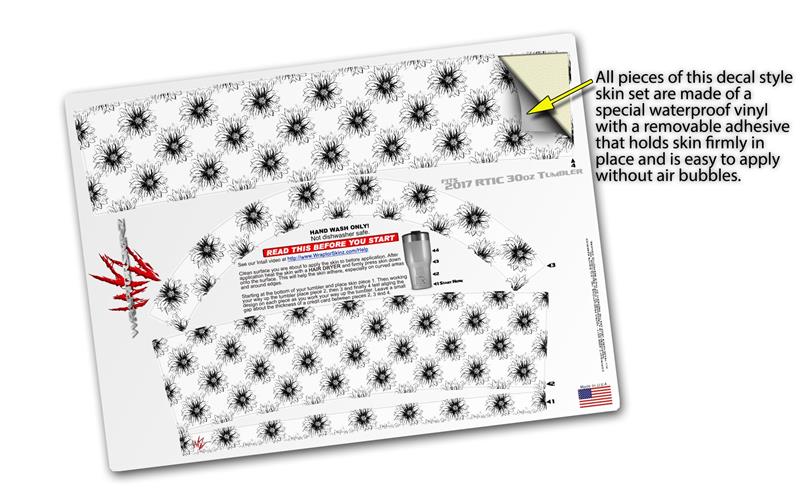 WraptorSkinz Skin Wrap compatible with 2017 and newer RTIC Tumblers 30oz Kearas Daisies Black on White (TUMBLER NOT INCLUDED)