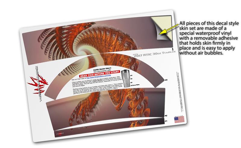 WraptorSkinz® skin wraps for 2017 RTIC Tumblers are printed using superb photo quality designs and vibrant colors printed with special fade resistant inks that last even in direct sun for years. WraptorSkinz® are a composite of two layers of commercial grade materials. The bottom layer is a soft, flexible vinyl with a special removable adhesive that is easily positioned, applied without air bubbles. Next we print the bottom layer with UV protected, fade resistant inks that deliver superb photo quality designs in vibrant colors. Finally we bond a professional grade laminate over the entire skin adding a glossy protective finish.