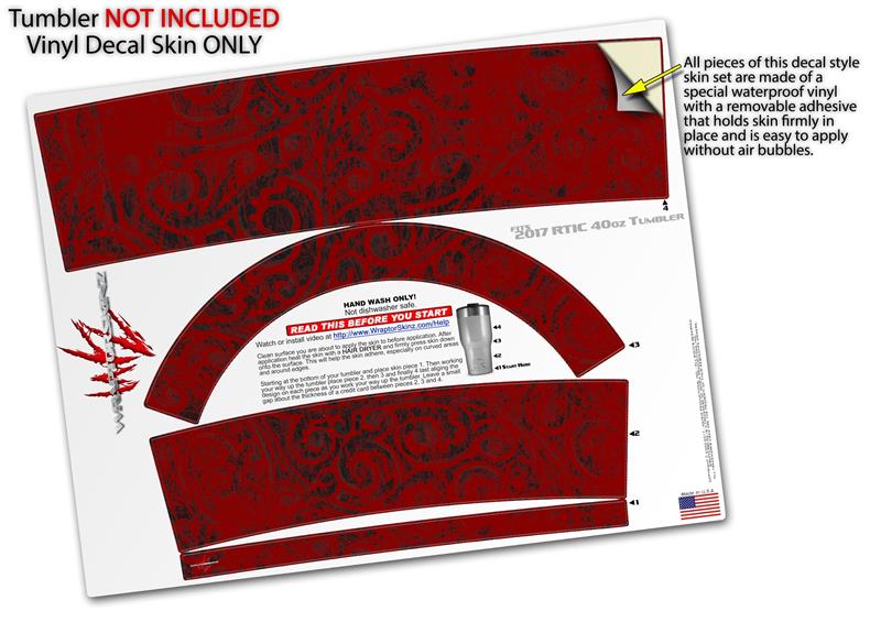 Skin Wrap Decal for 2017 RTIC Tumblers 40oz Folder Doodles Red Dark (TUMBLER NOT INCLUDED)