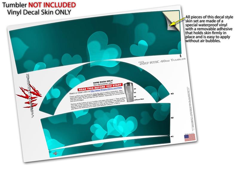 Skin Wrap Decal for 2017 RTIC Tumblers 40oz Bokeh Hearts Neon Teal (TUMBLER NOT INCLUDED)