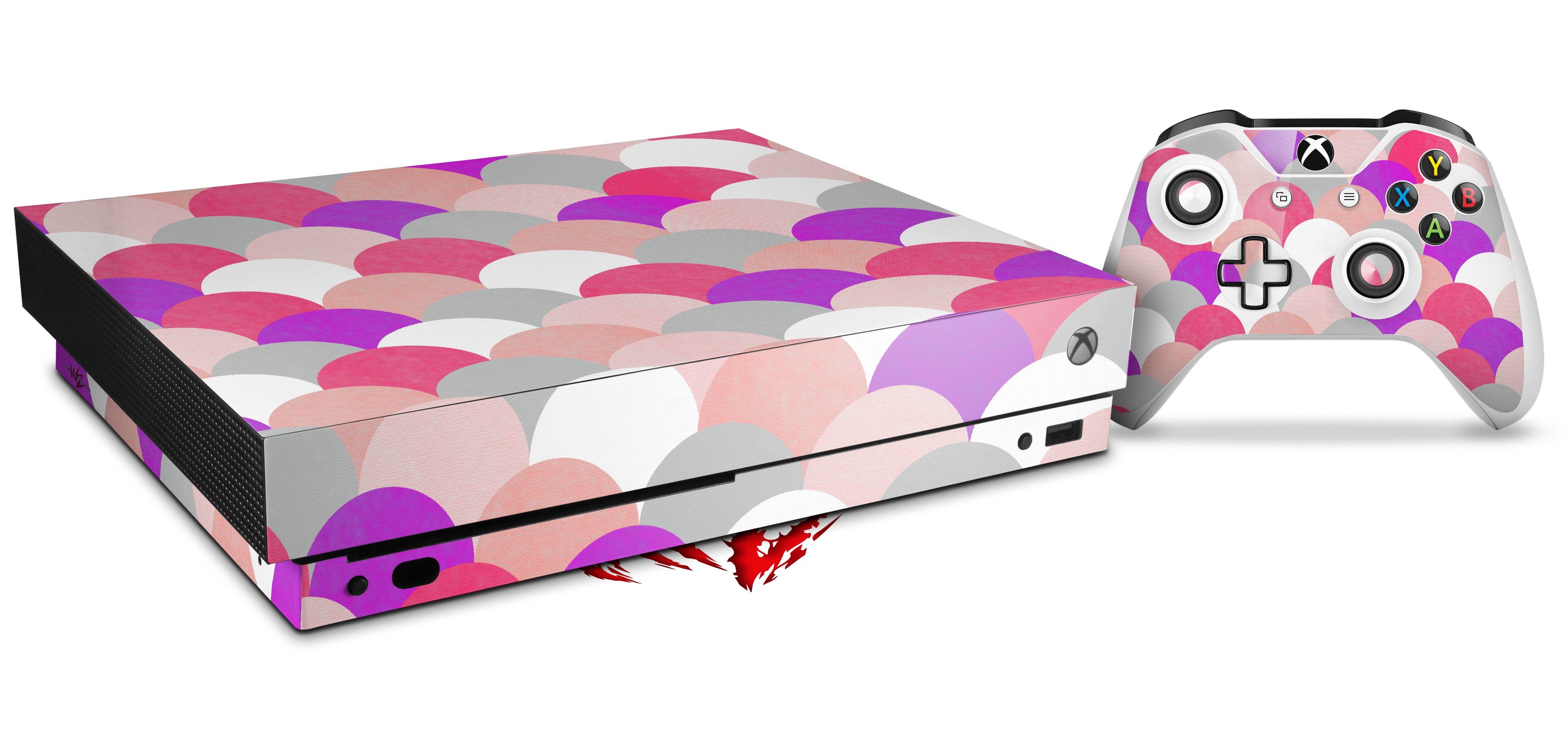 Skin Wrap for XBOX One X Console and Controller Brushed Circles Pink