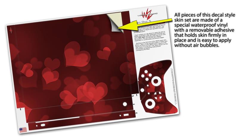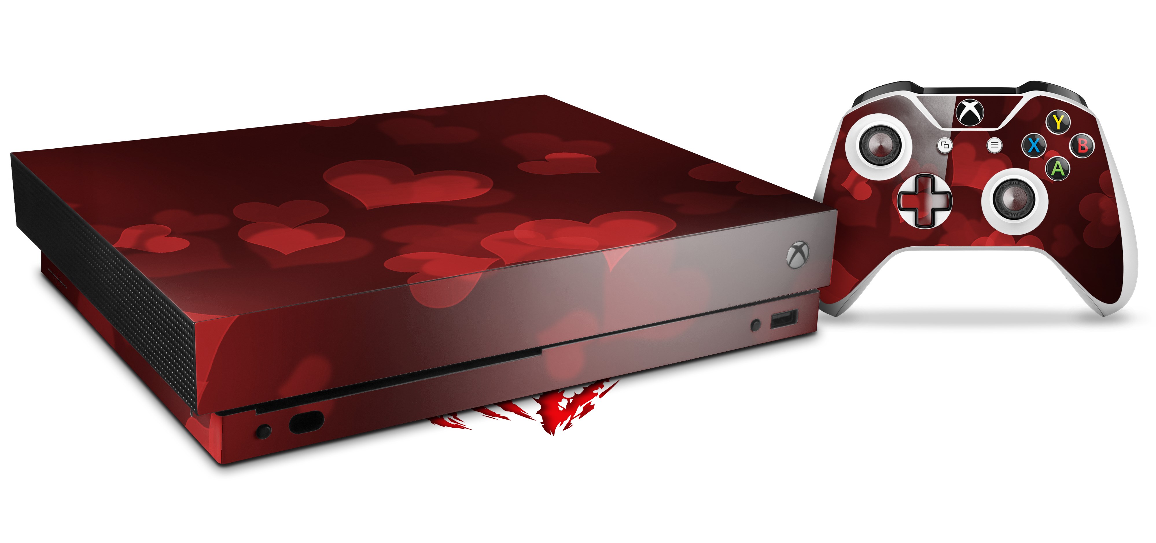 Skin Wrap for XBOX One X Console and Controller Bokeh Hearts Red