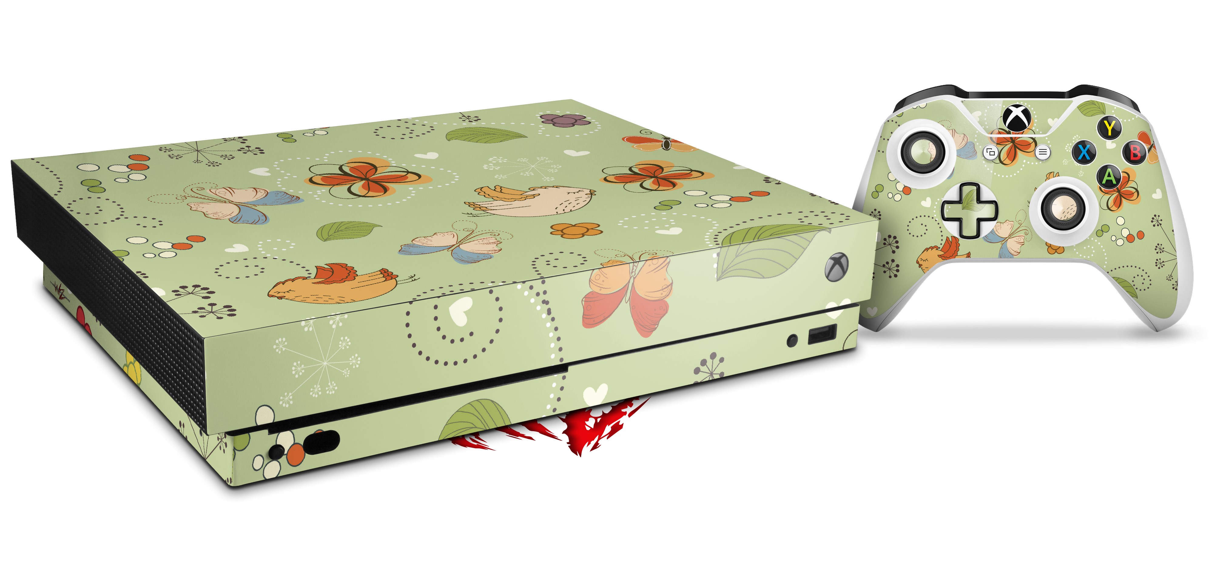 Skin Wrap for XBOX One X Console and Controller Birds Butterflies and Flowers