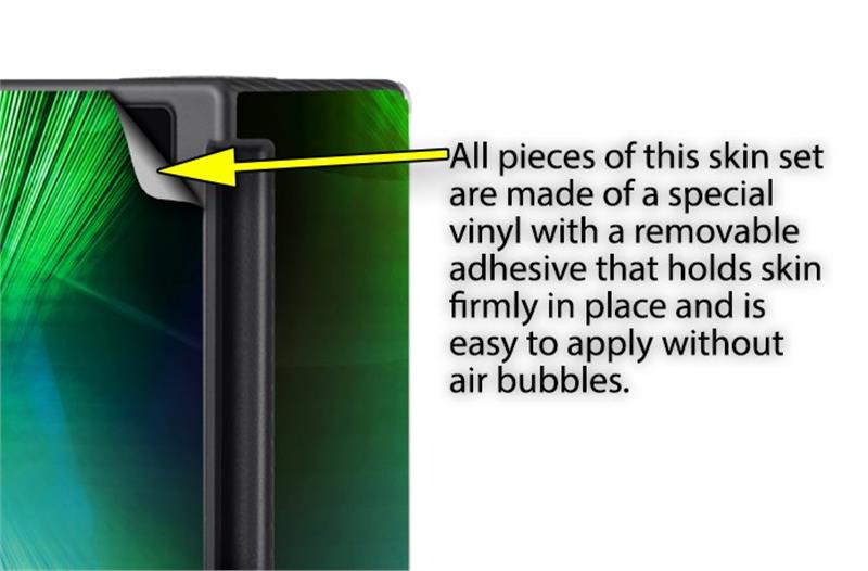 WraptorSkinz® skins are superb photo quality designs and vibrant colors printed with special Eco-Friendly, fade resistant inks. Our skins are self-adhering flexible vinyl skins that helps prevent scratches. Made of composite, multi-layered commercial grade materials. The bottom layer is made with a special removable adhesive that is easily positioned and applied without air bubbles. We print your design on the bottom layer then bond a professional grade laminate over the entire skin adding a glossy protective finish.