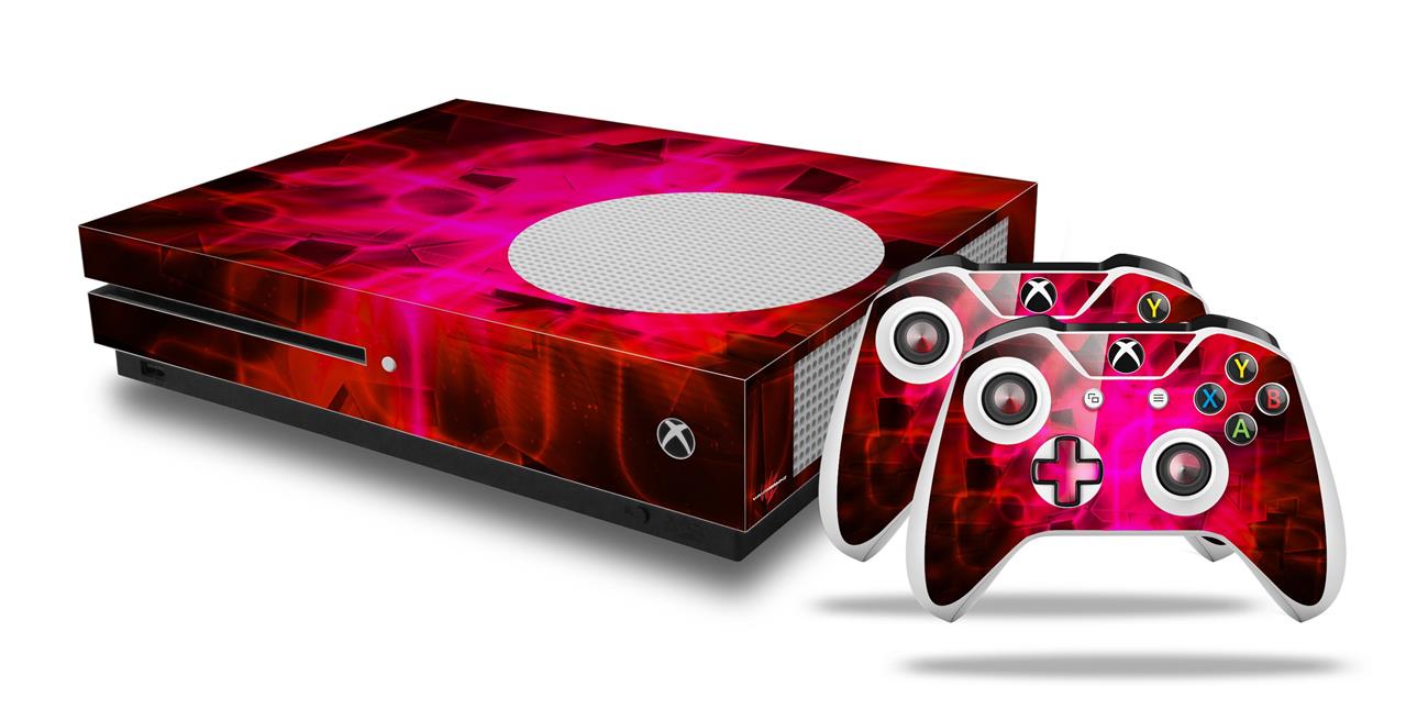 WraptorSkinz Decal Skin Wrap Set works with 2016 and newer XBOX One S Console and 2 Controllers Cubic Shards Red