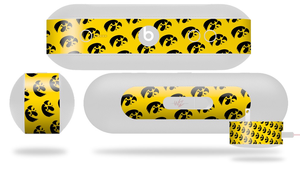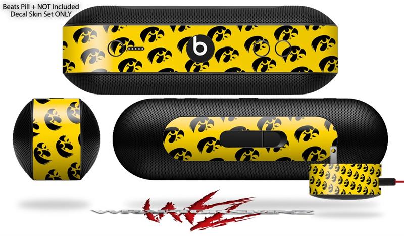 Decal Style Wrap Skin fits Beats Pill Plus Iowa Hawkeyes Tigerhawk Tiled 06 Black on Gold (BEATS PILL NOT INCLUDED)