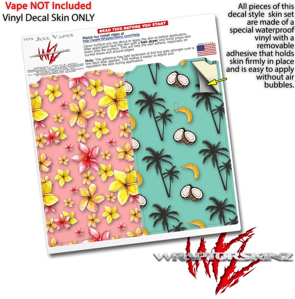 Skin Decal Wrap 2 Pack for Juul Vapes Beach Flowers Pink JUUL NOT INCLUDED
