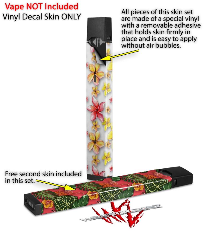 Skin Decal Wrap 2 Pack for Juul Vapes Beach Flowers White JUUL NOT INCLUDED
