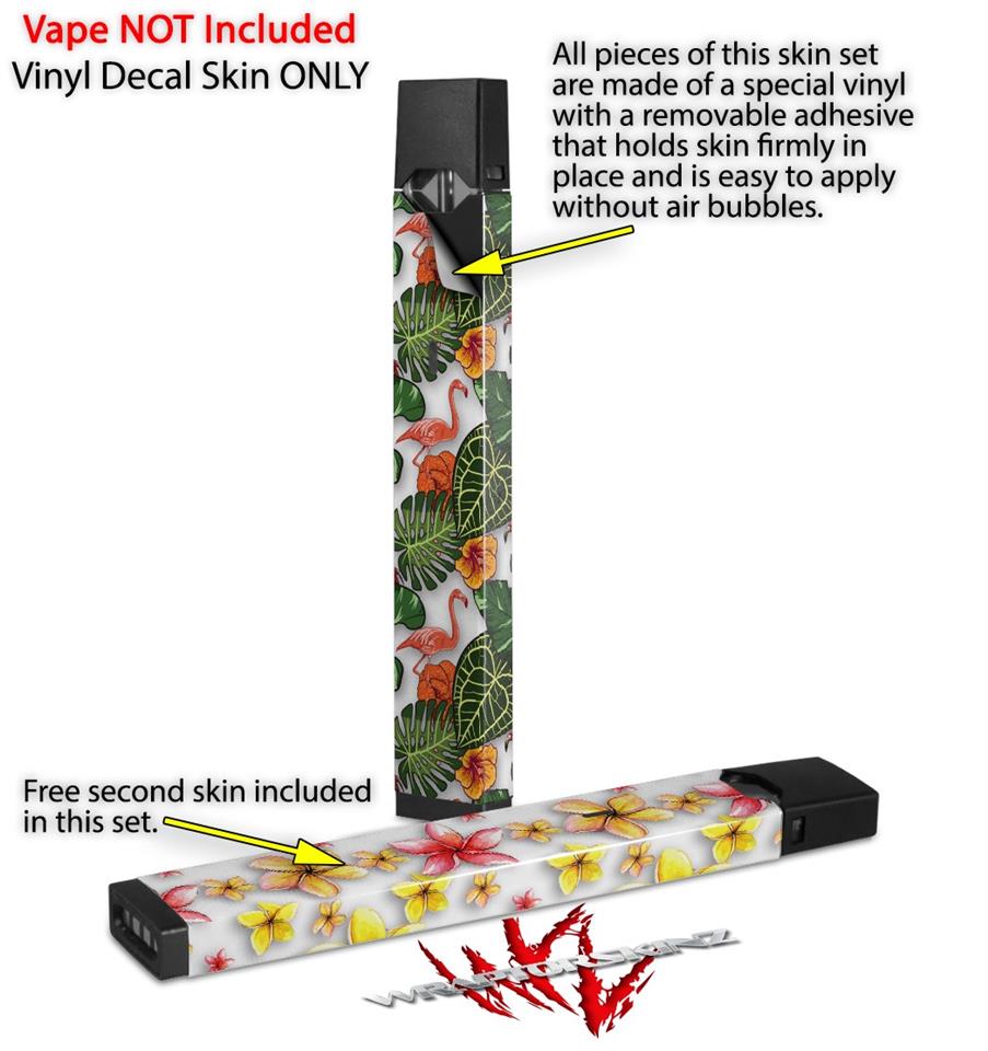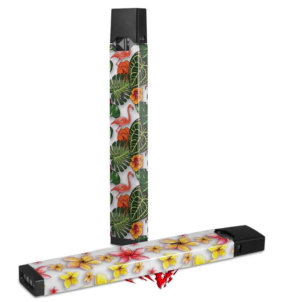 Skin Decal Wrap 2 Pack for Juul Vapes Famingos and Flowers White JUUL NOT INCLUDED