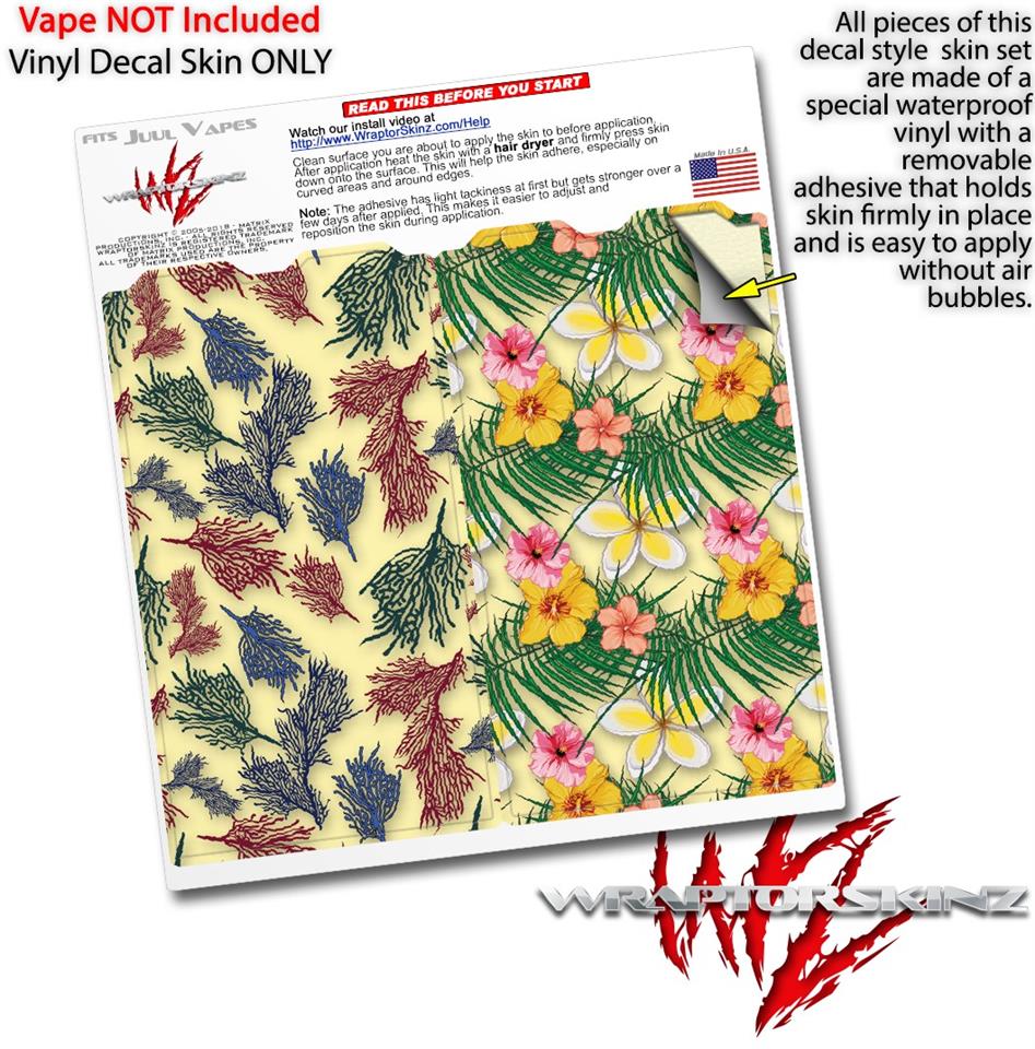 Skin Decal Wrap 2 Pack for Juul Vapes Floating Coral Yellow Sunshine JUUL NOT INCLUDED