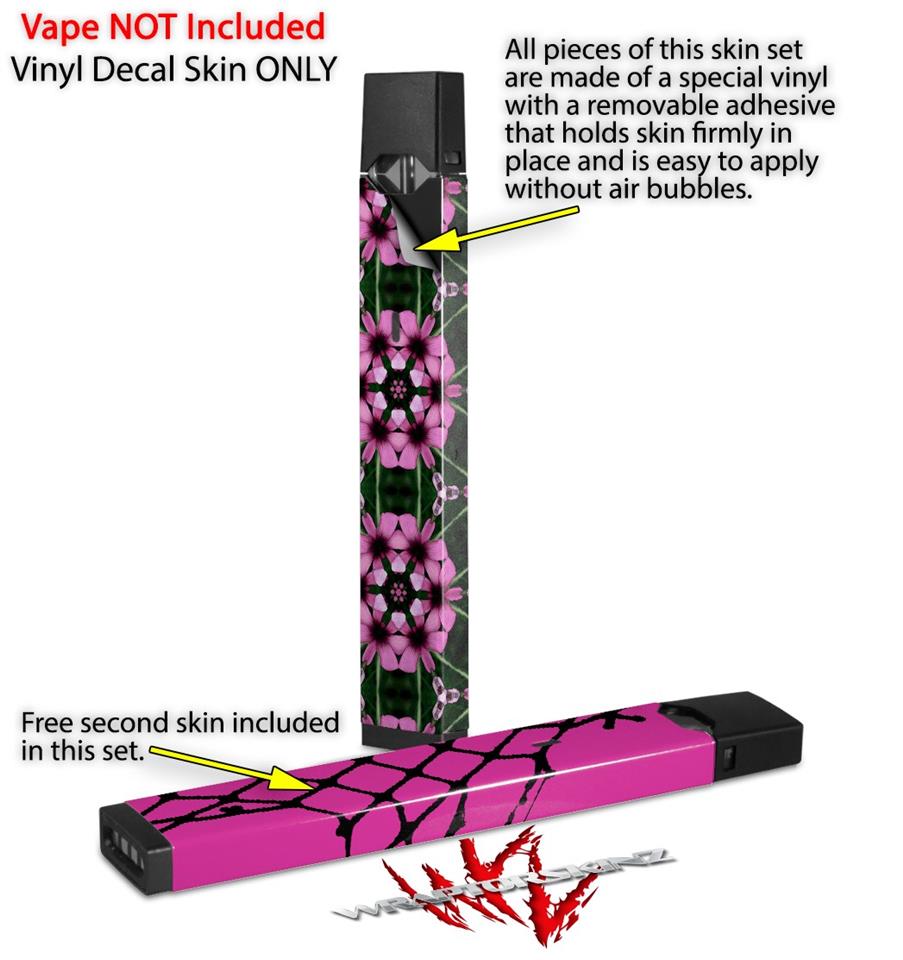 Skin Decal Wrap 2 Pack for Juul Vapes Floral Pattern Pink JUUL NOT INCLUDED