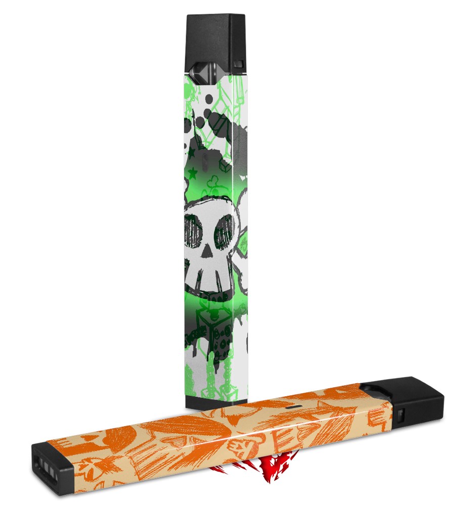 Skin Decal Wrap 2 Pack for Juul Vapes Cartoon Skull Green JUUL NOT INCLUDED