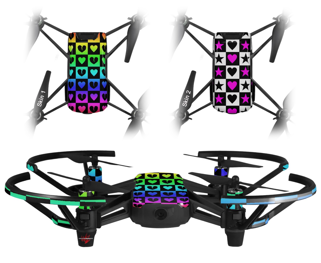 Skin Decal Wrap 2 Pack for DJI Ryze Tello Drone Love Heart Checkers Rainbow DRONE NOT INCLUDED