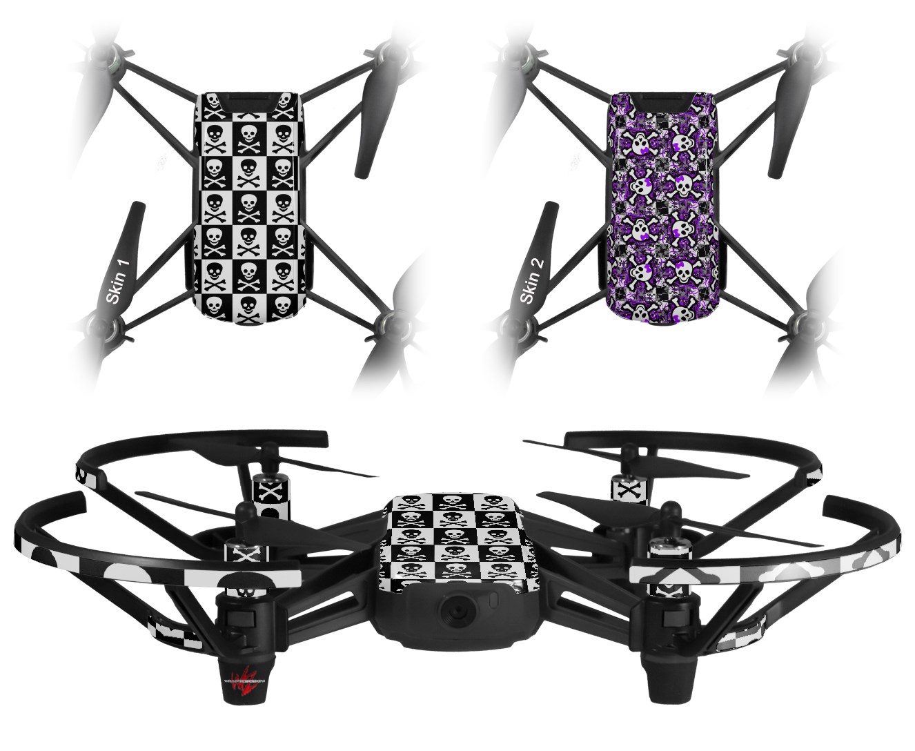 Skin Decal Wrap 2 Pack for DJI Ryze Tello Drone Skull Checkerboard DRONE NOT INCLUDED