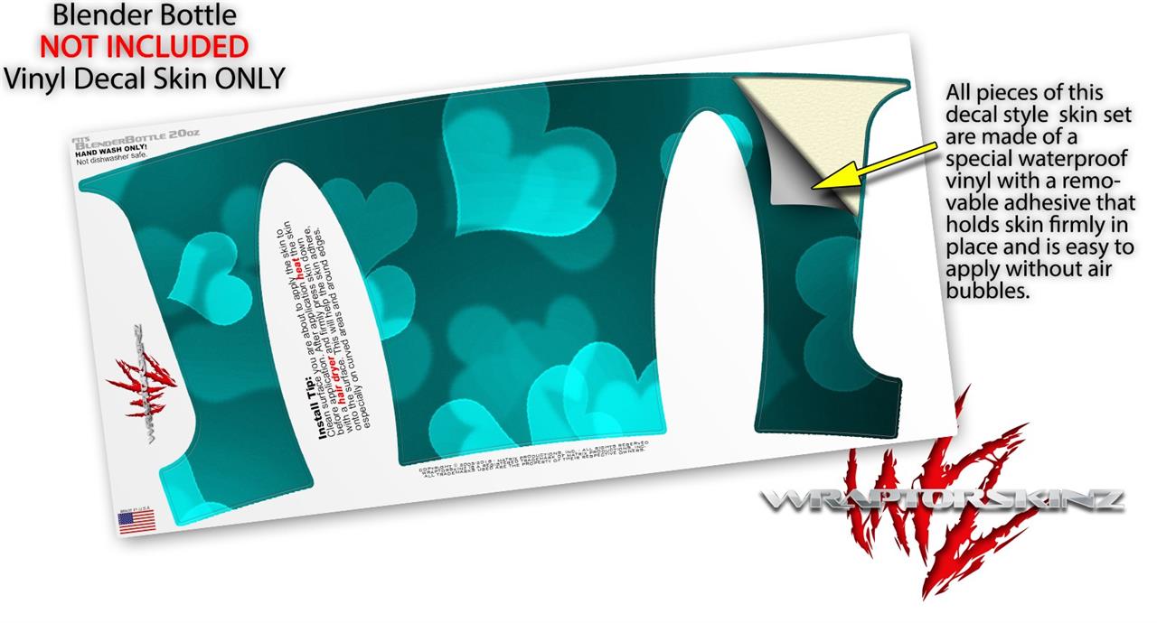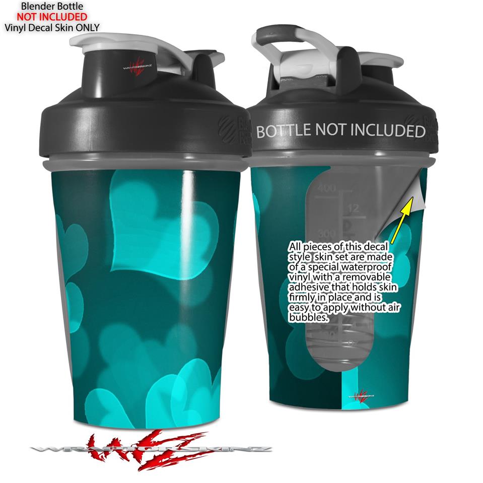 Decal Style Skin Wrap works with Blender Bottle 20oz Bokeh Hearts Neon Teal (BOTTLE NOT INCLUDED)