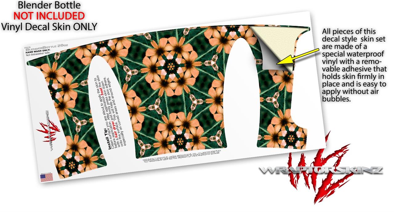 Decal Style Skin Wrap works with Blender Bottle 20oz Floral Pattern Orange (BOTTLE NOT INCLUDED)