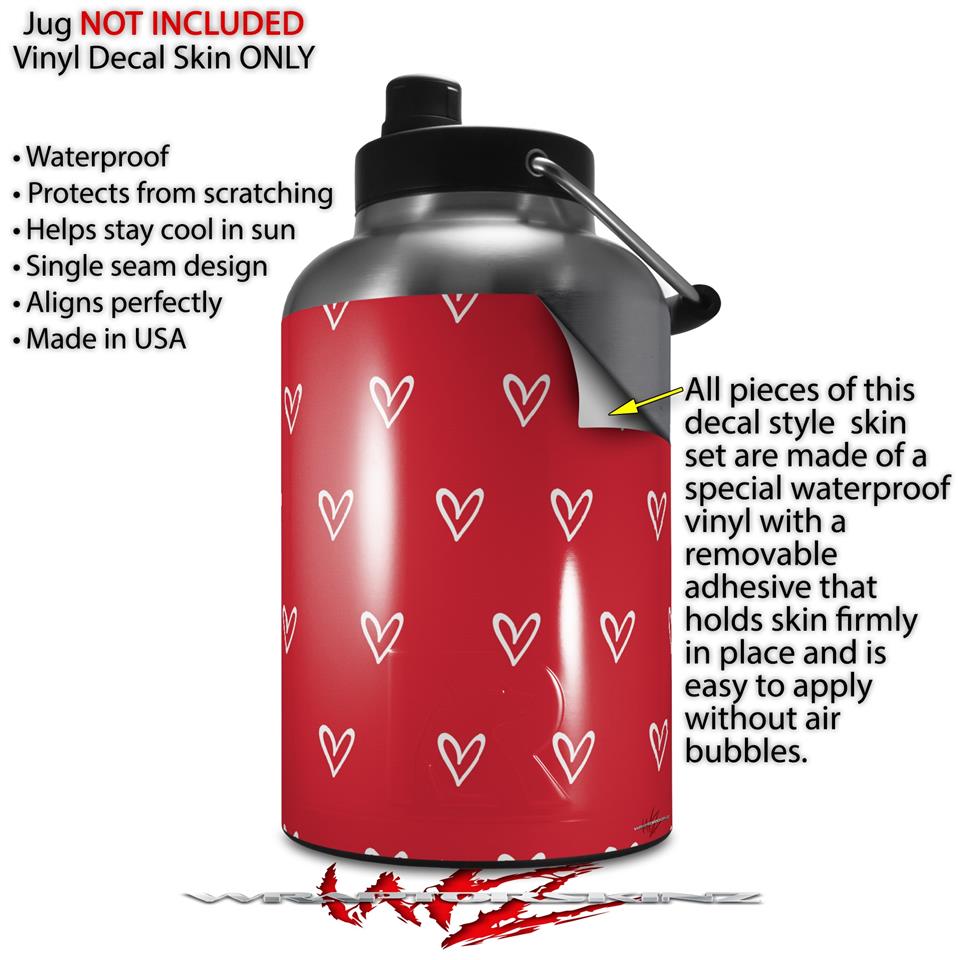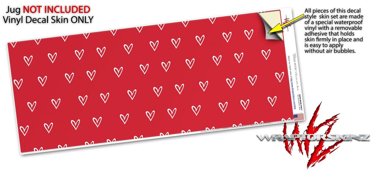 Skin Decal Wrap for 2017 RTIC One Gallon Jug Hearts Red On White (Jug NOT INCLUDED) by WraptorSkinz