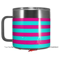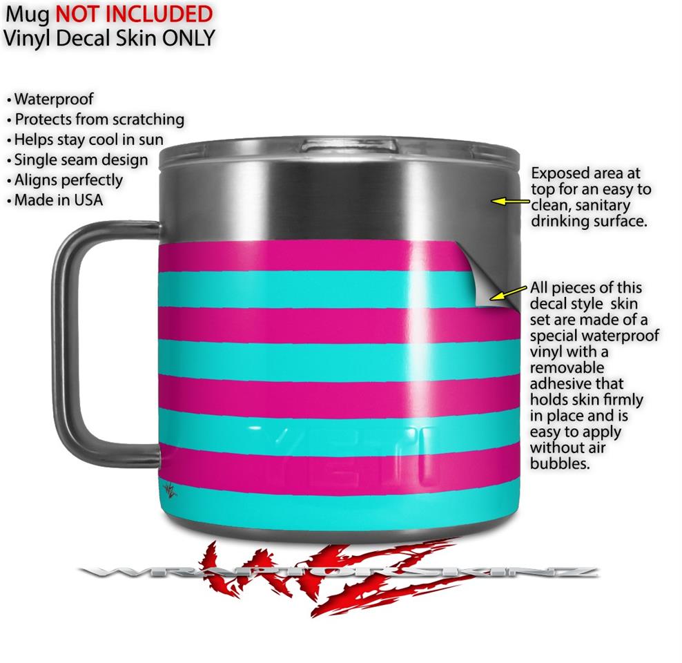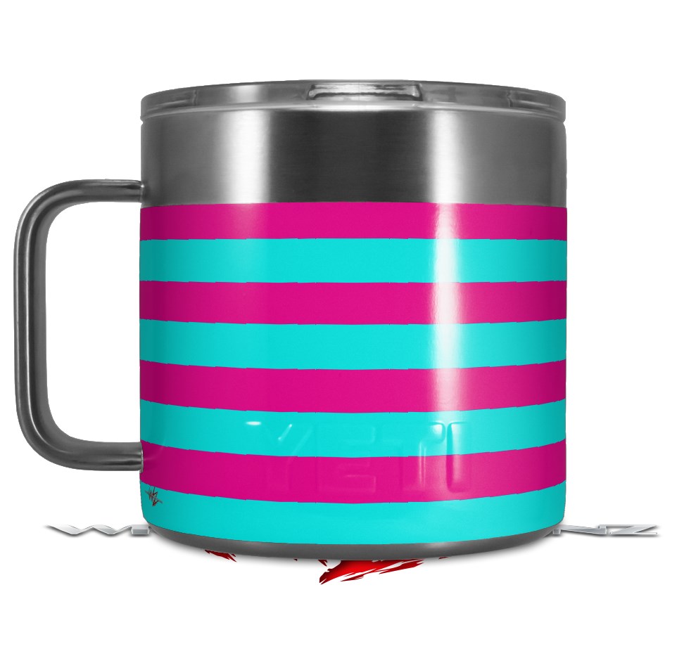 Skin Decal Wrap for Yeti Coffee Mug 14oz Psycho Stripes Neon Teal and Hot Pink - 14 oz CUP NOT INCLUDED by WraptorSkinz