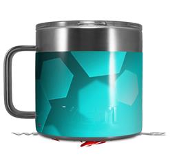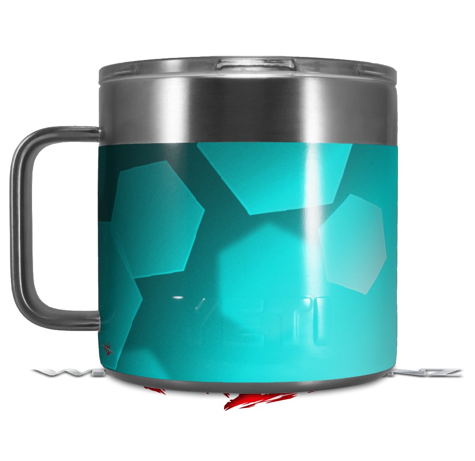 Skin Decal Wrap for Yeti Coffee Mug 14oz Bokeh Hex Neon Teal - 14 oz CUP NOT INCLUDED by WraptorSkinz