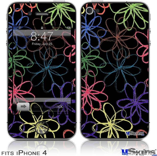 iPhone 4 Decal Style Vinyl Skin - Kearas Flowers on Black (DOES NOT fit newer iPhone 4S)