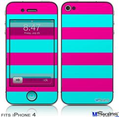 iPhone 4 Decal Style Vinyl Skin - Psycho Stripes Neon Teal and Hot Pink (DOES NOT fit newer iPhone 4S)