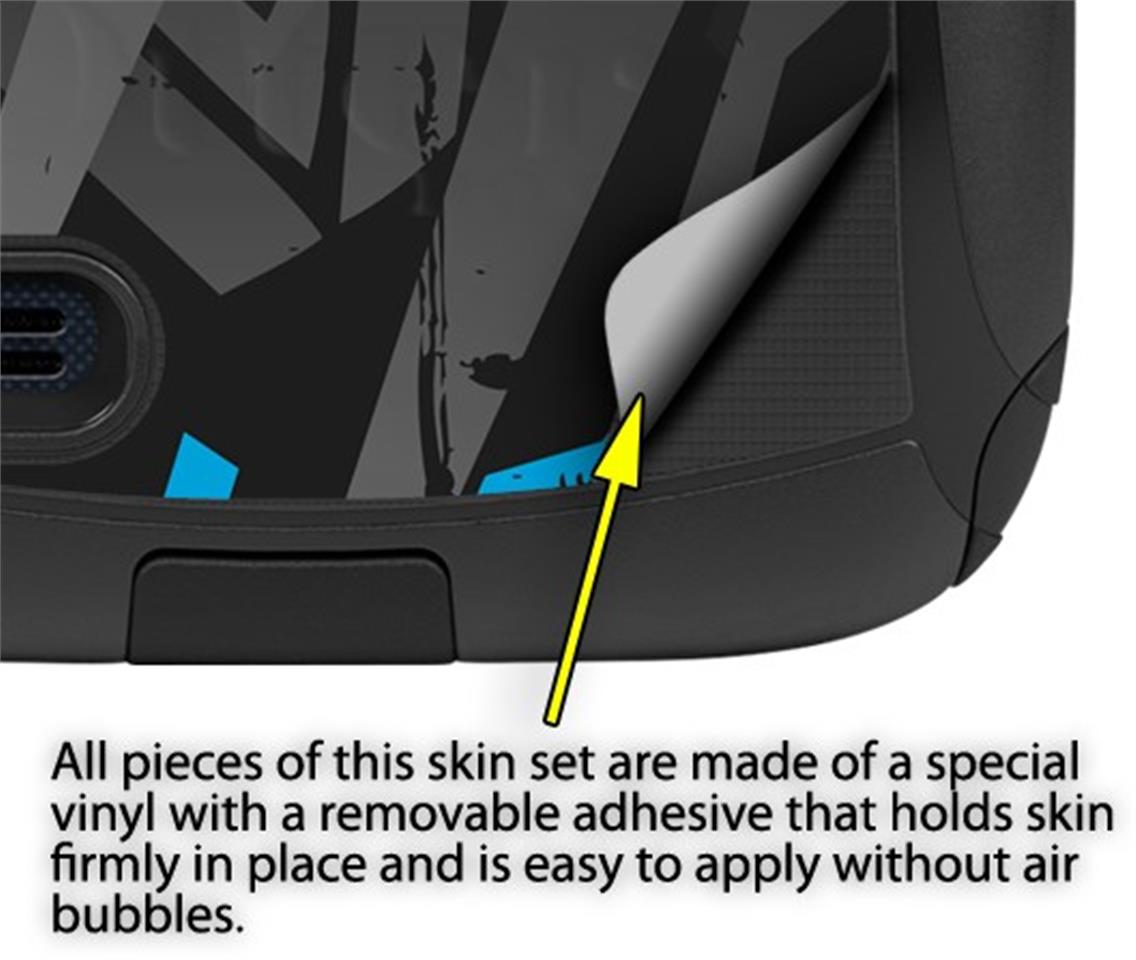 WraptorSkinz® are self adhering vinyl decal style skins and are a great way to add a new look to your protective case. WraptorSkinz® are a composite of two layers of commercial grade materials. The bottom layer is a soft, flexible vinyl with a special removable adhesive that is easily positioned, applied without air bubbles. Next we print the bottom layer with UV protected, fade resistant inks that deliver superb photo quality designs in vibrant colors. Finally we bond a professional grade laminate over the entire skin adding a glossy protective finish.