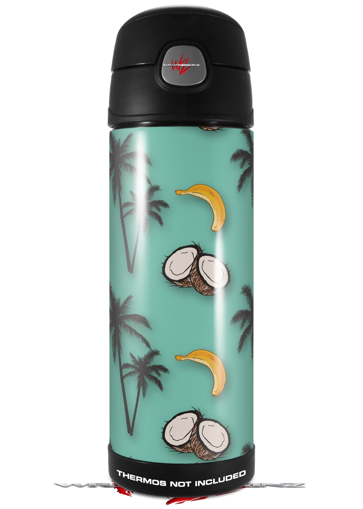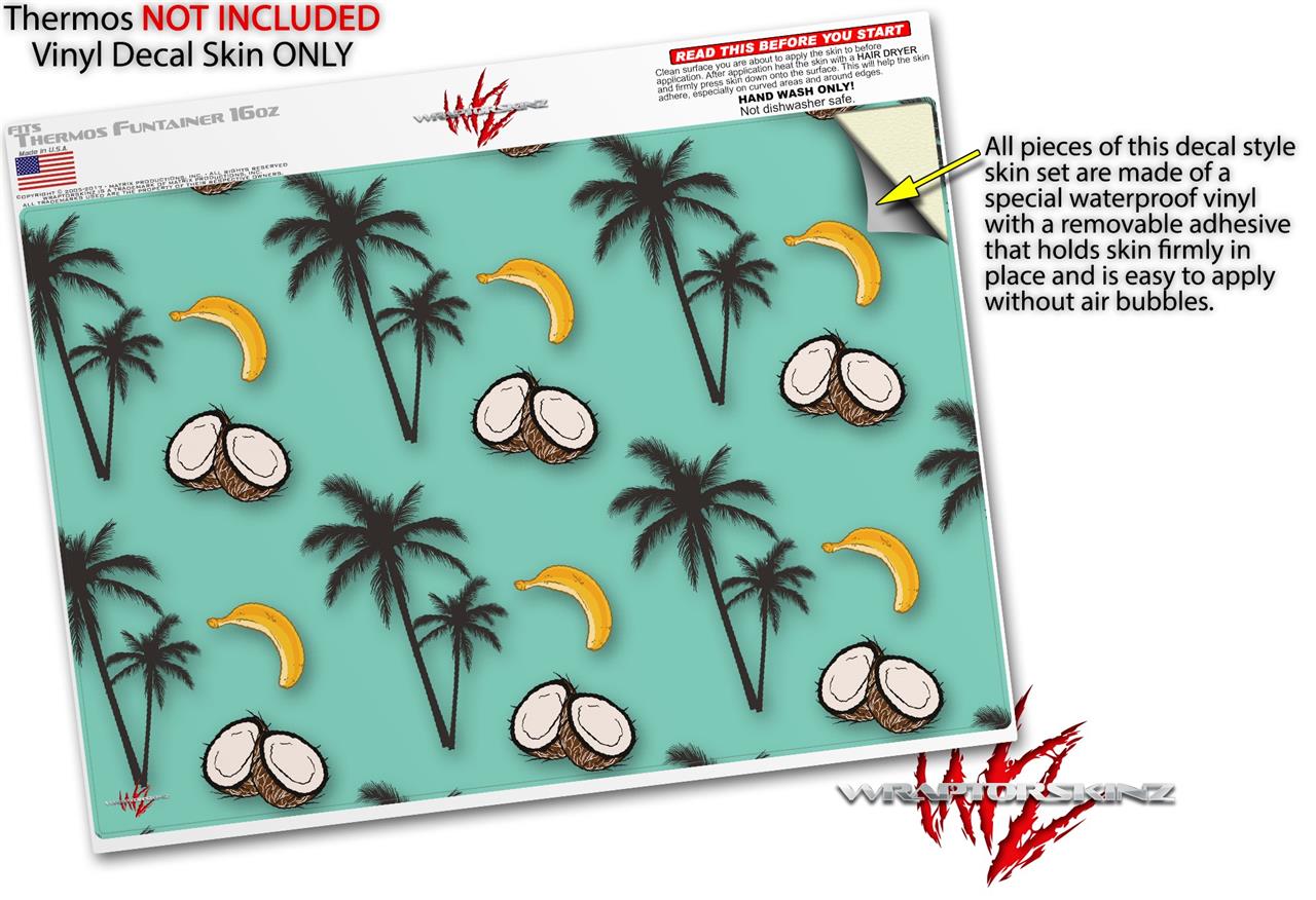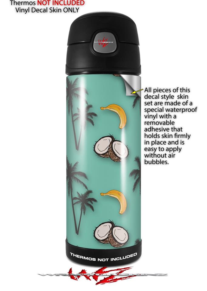 Skin Decal Wrap for Thermos Funtainer 16oz Bottle Coconuts Palm Trees and Bananas Seafoam Green (BOTTLE NOT INCLUDED) by WraptorSkinz