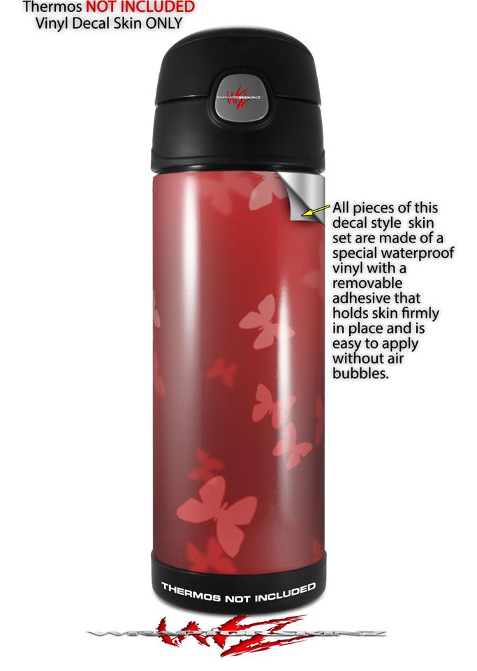Skin Decal Wrap for Thermos Funtainer 16oz Bottle Bokeh Butterflies Red (BOTTLE NOT INCLUDED) by WraptorSkinz