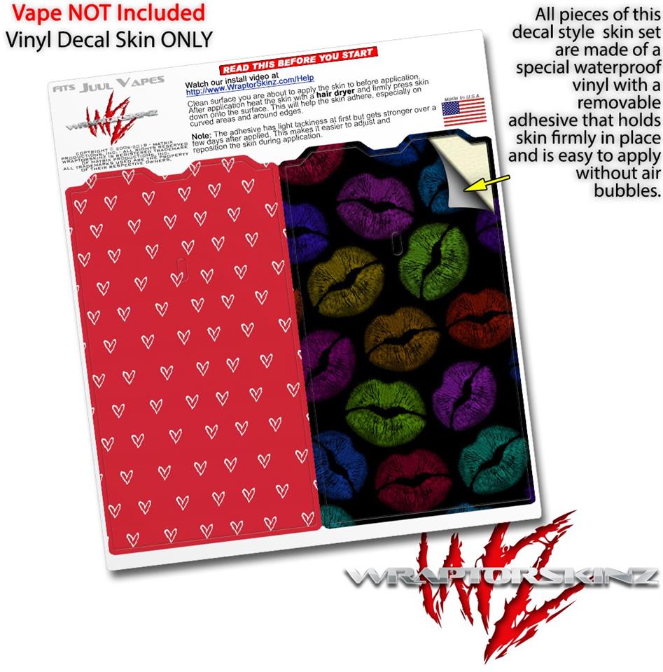 Skin Decal Wrap 2 Pack for Juul Vapes Hearts Red On White JUUL NOT INCLUDED