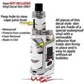 WraptorSkinz® skin wraps are printed using superb photo quality designs and vibrant colors printed with special fade resistant inks that last even in direct sun for years. WraptorSkinz are a composite of two layers of commercial grade materials. The bottom layer is a soft, flexible vinyl with a special removable adhesive that is easily positioned, applied without air bubbles. Next we print the bottom layer with UV protected, fade resistant inks that deliver superb photo quality designs in vibrant colors. Finally we bond a professional grade laminate over the entire skin adding a glossy protective finish. This product is not affiliated with or endorsed by the Smok brand.