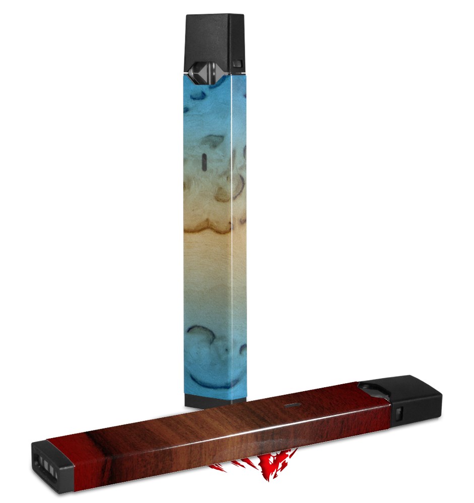 Skin Decal Wrap 2 Pack for Juul Vapes Exotic Wood Karelian Burl Burst Neon Blue JUUL NOT INCLUDED