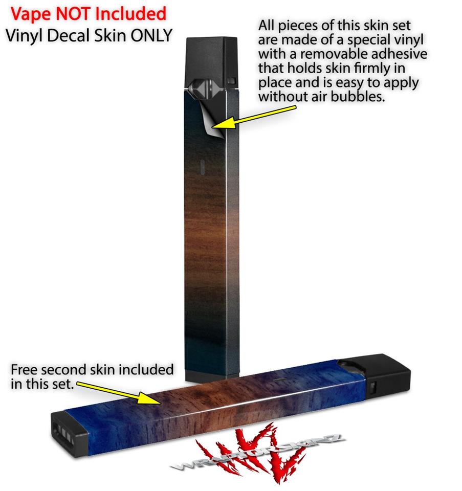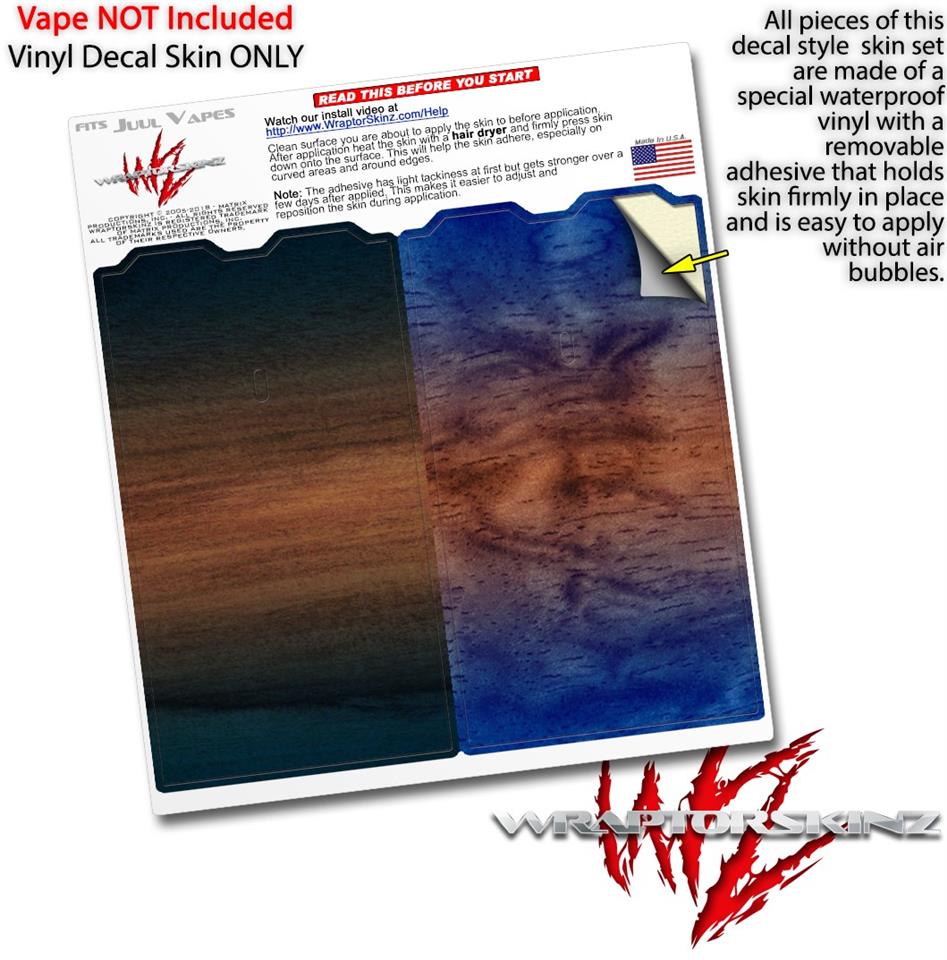 Skin Decal Wrap 2 Pack for Juul Vapes Exotic Wood Rosewood Burst Deep Blue JUUL NOT INCLUDED