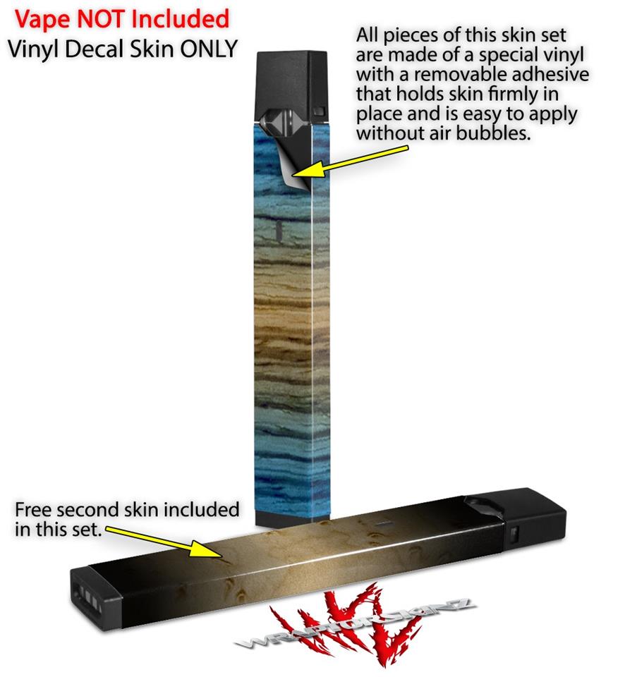 Skin Decal Wrap 2 Pack for Juul Vapes Exotic Wood Zebra Wood Burst Neon Blue JUUL NOT INCLUDED