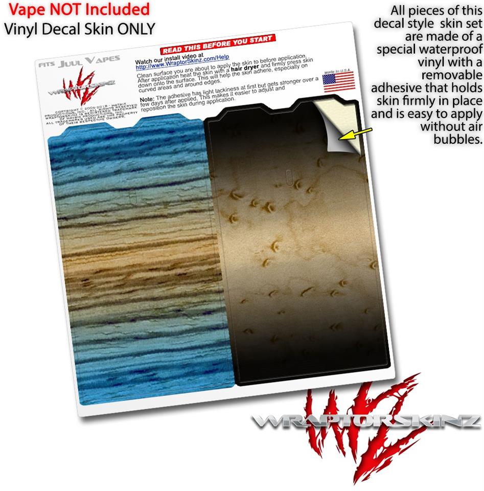 WraptorSkinz® skin wraps are printed using superb photo quality designs and vibrant colors printed with special fade resistant inks that last even in direct sun for years. WraptorSkinz are a composite of two layers of commercial grade materials. The bottom layer is a soft, flexible vinyl with a special removable adhesive that is easily positioned, applied without air bubbles. Next we print the bottom layer with UV protected, fade resistant inks that deliver superb photo quality designs in vibrant colors. Finally we bond a professional grade laminate over the entire skin adding a glossy protective finish. This product is not affiliated with or endorsed by the Juul brand.