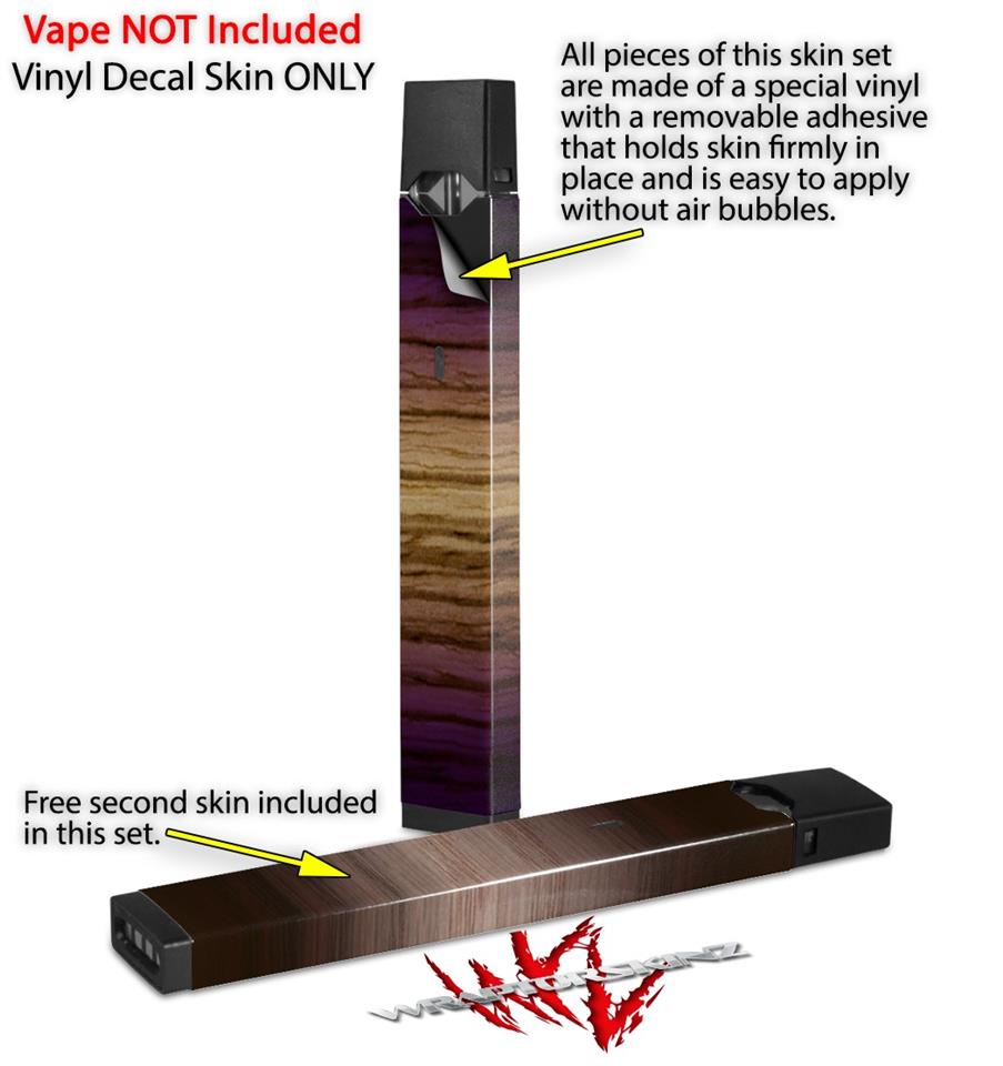 Skin Decal Wrap 2 Pack for Juul Vapes Exotic Wood Zebra Wood Burst Plum Purple JUUL NOT INCLUDED