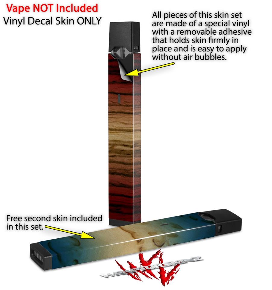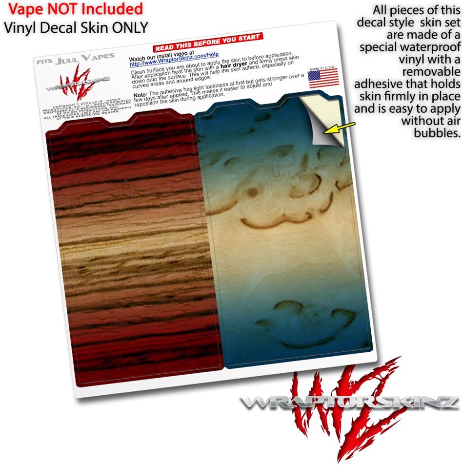 Skin Decal Wrap 2 Pack for Juul Vapes Exotic Wood Zebra Wood Burst Red Cherry JUUL NOT INCLUDED