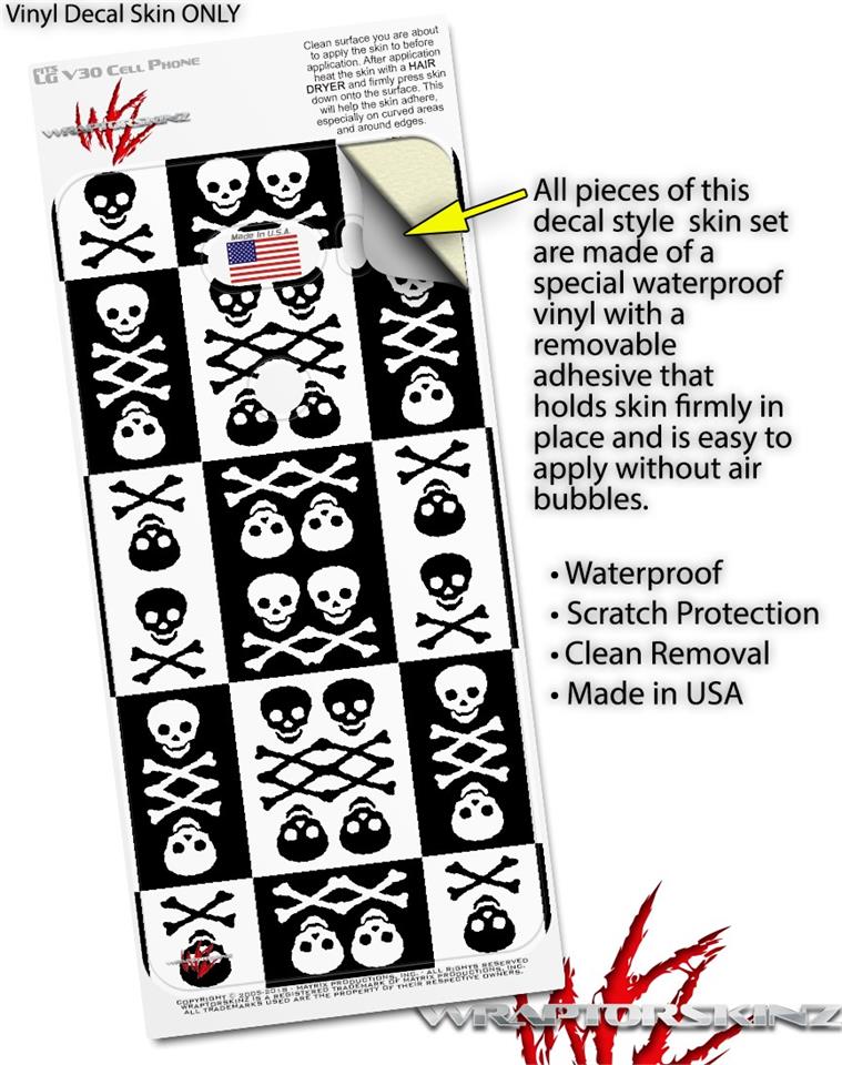 Skin Decal Wrap for LG V30 Skull And Crossbones Pattern Bw