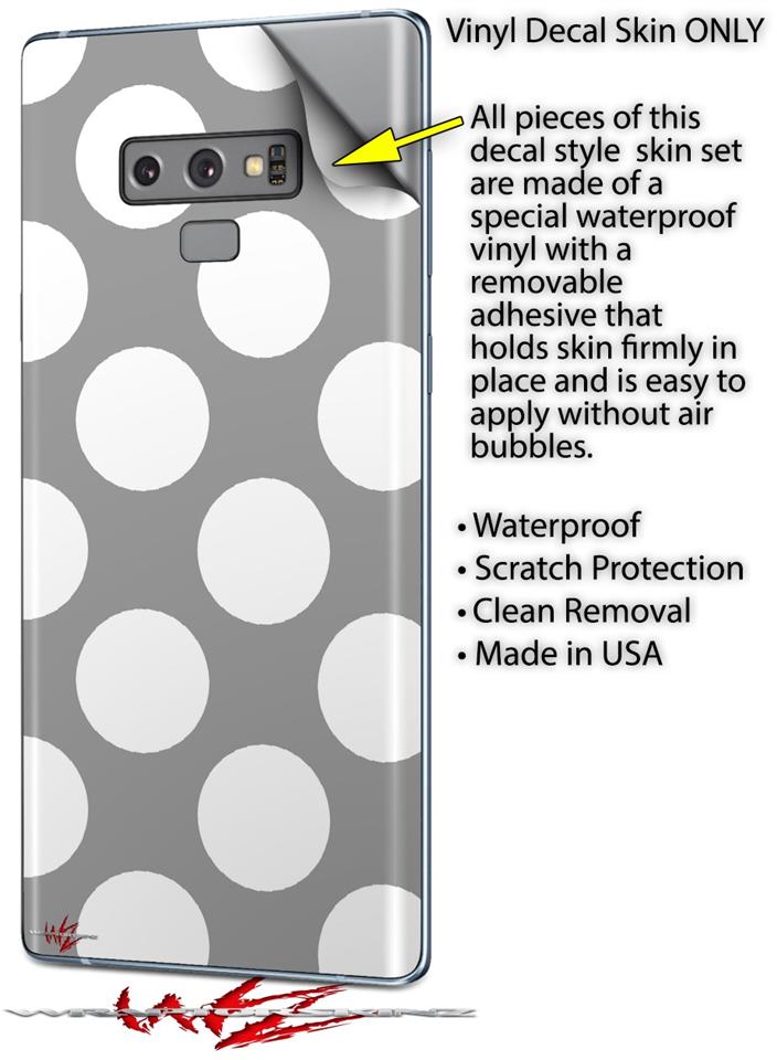 Decal style Skin Wrap compatible with Samsung Galaxy Note 9 Kearas Polka Dots Whtie On Gray
