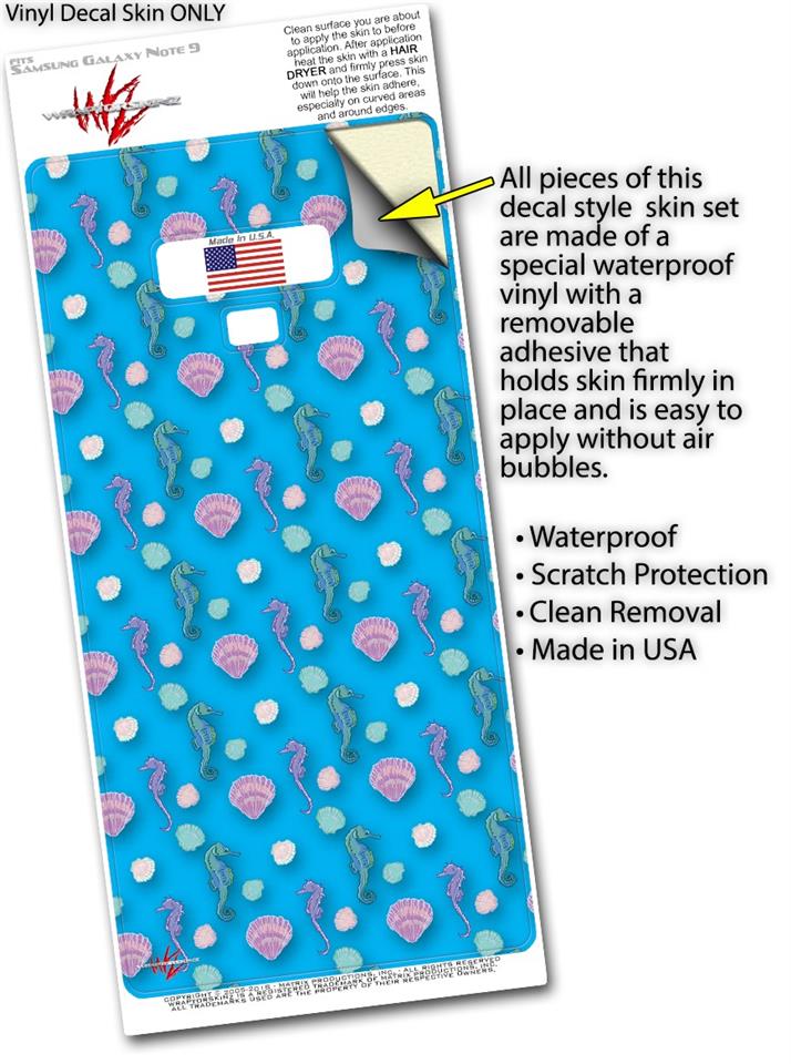 Decal style Skin Wrap compatible with Samsung Galaxy Note 9 Seahorses and Shells Blue Medium