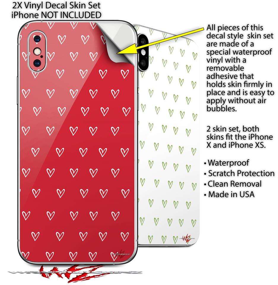 2 Decal style Skin Wraps set for Apple iPhone X and XS Hearts Red On White