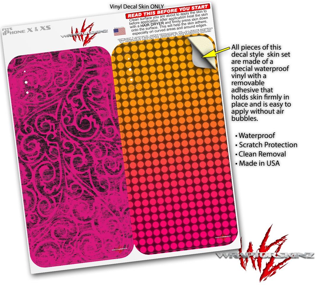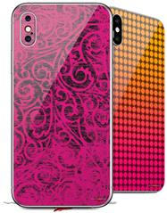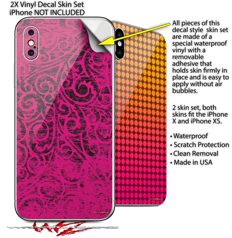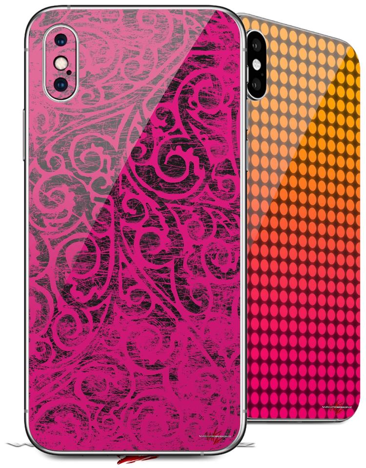 2 Decal style Skin Wraps set for Apple iPhone X and XS Folder Doodles Fuchsia