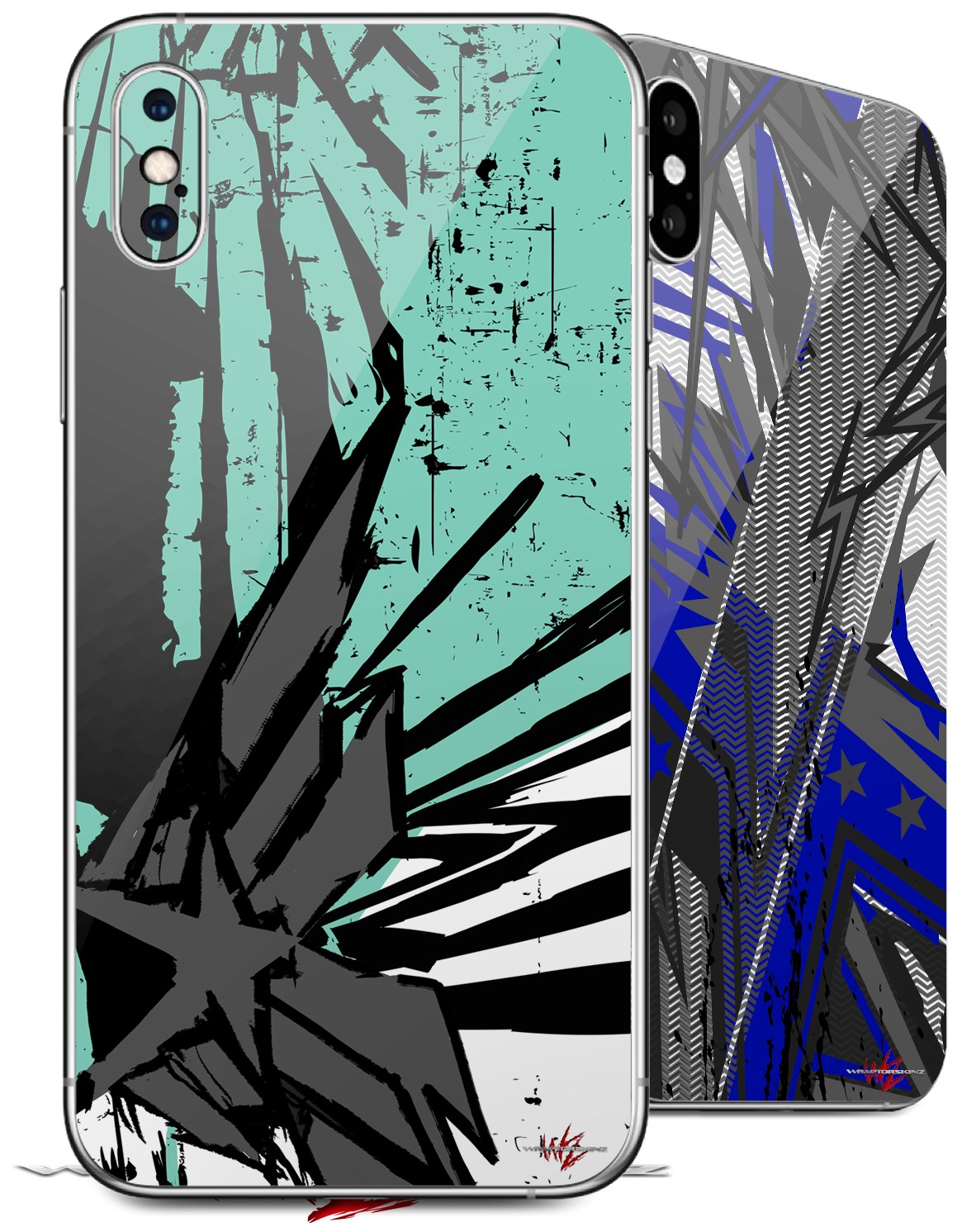 2 Decal style Skin Wraps set for Apple iPhone X and XS Baja 0040 Seafoam Green