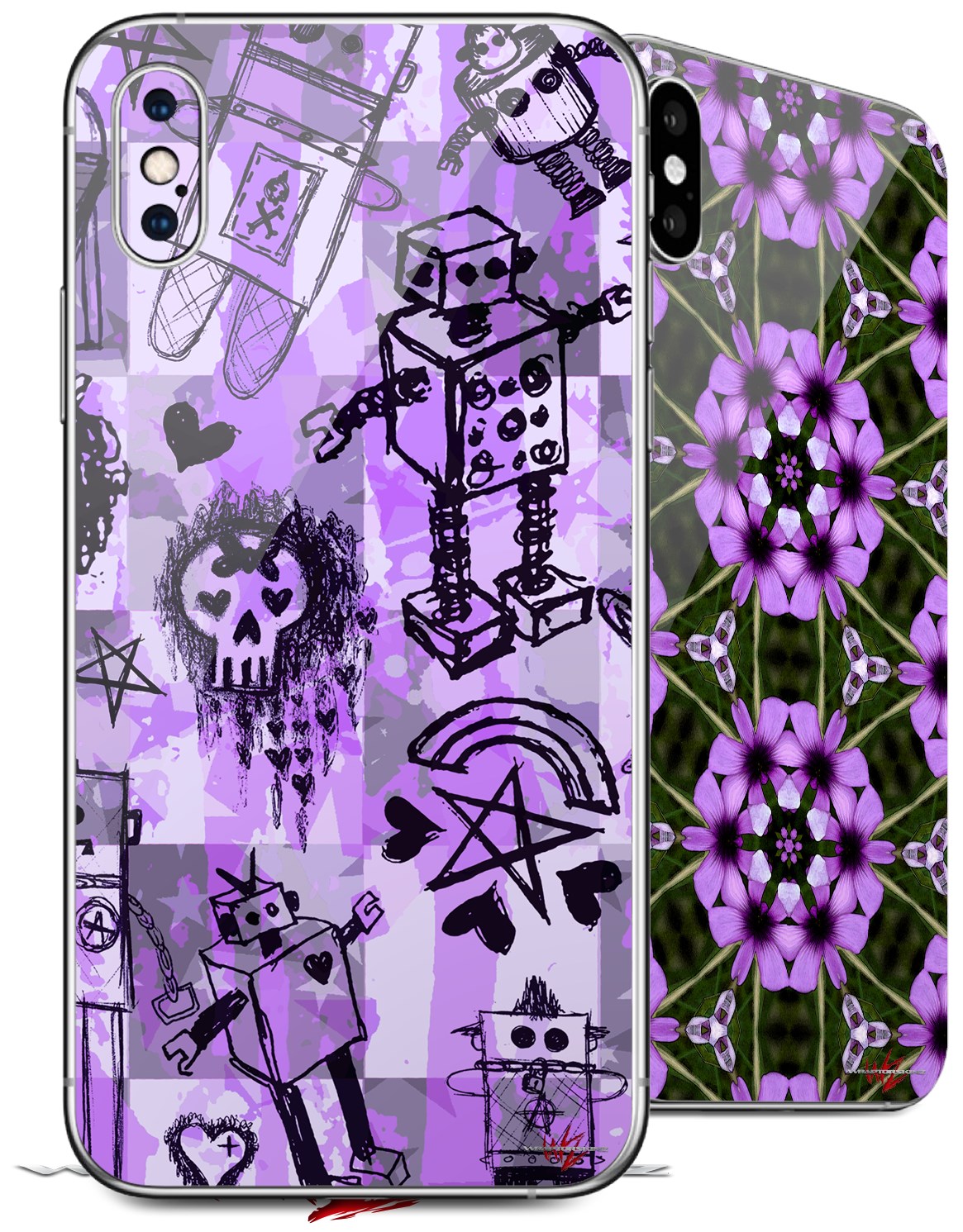 2 Decal style Skin Wraps set for Apple iPhone X and XS Scene Kid Sketches Purple