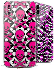2 Decal style Skin Wraps set for Apple iPhone X and XS Pink Skulls and Stars