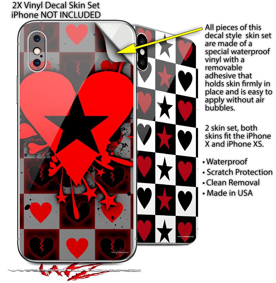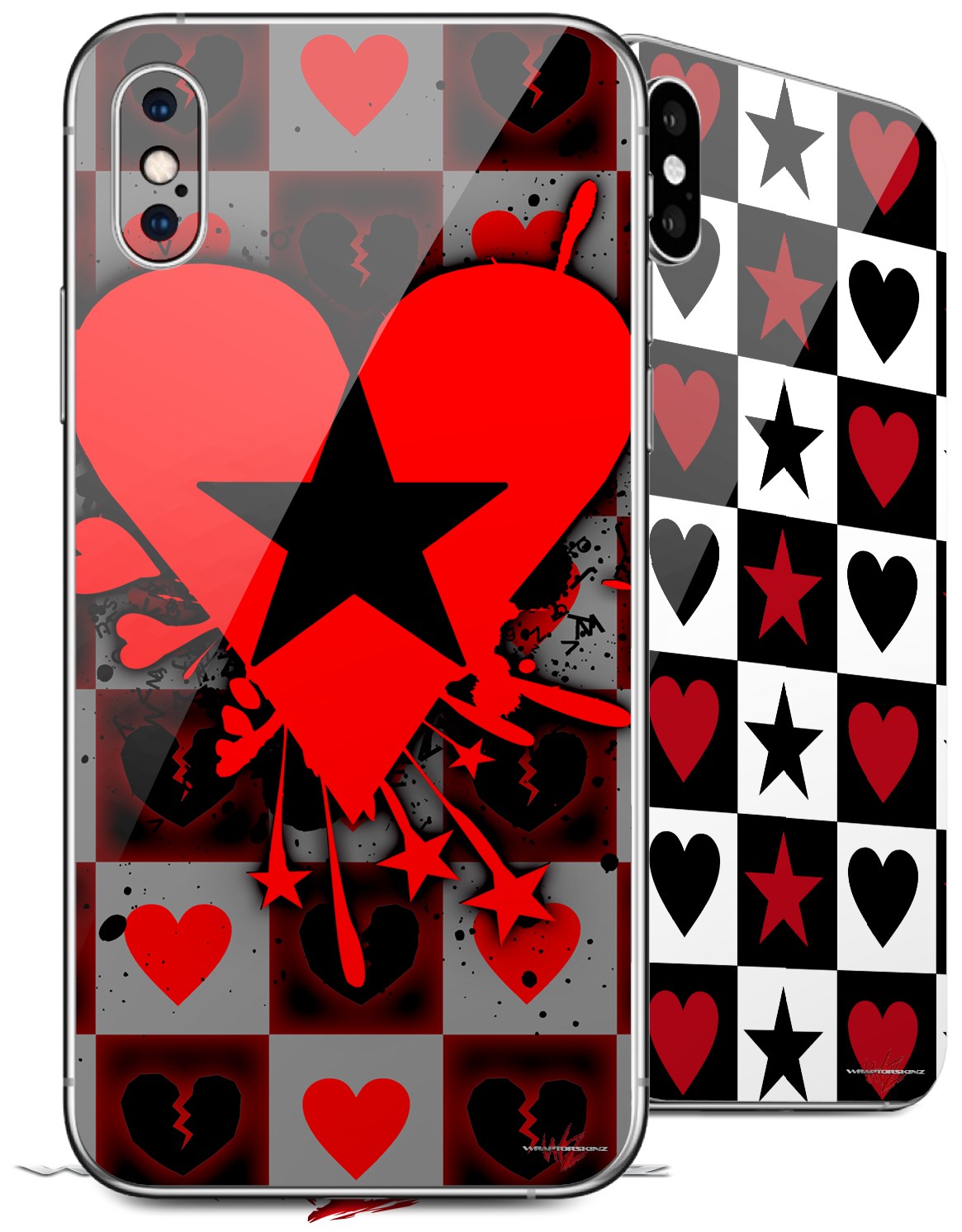 2 Decal style Skin Wraps set for Apple iPhone X and XS Emo Star Heart