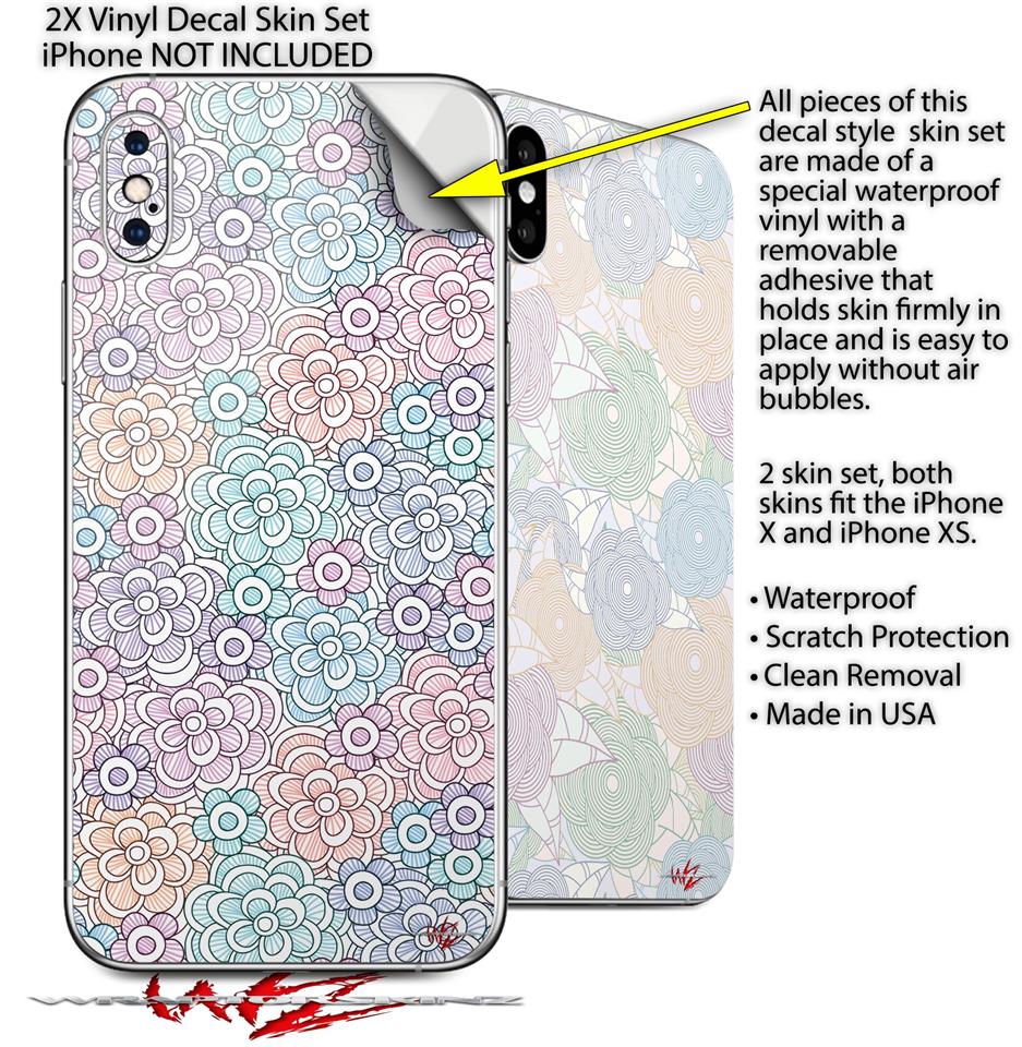 2 Decal style Skin Wraps set for Apple iPhone X and XS Flowers Pattern 08
